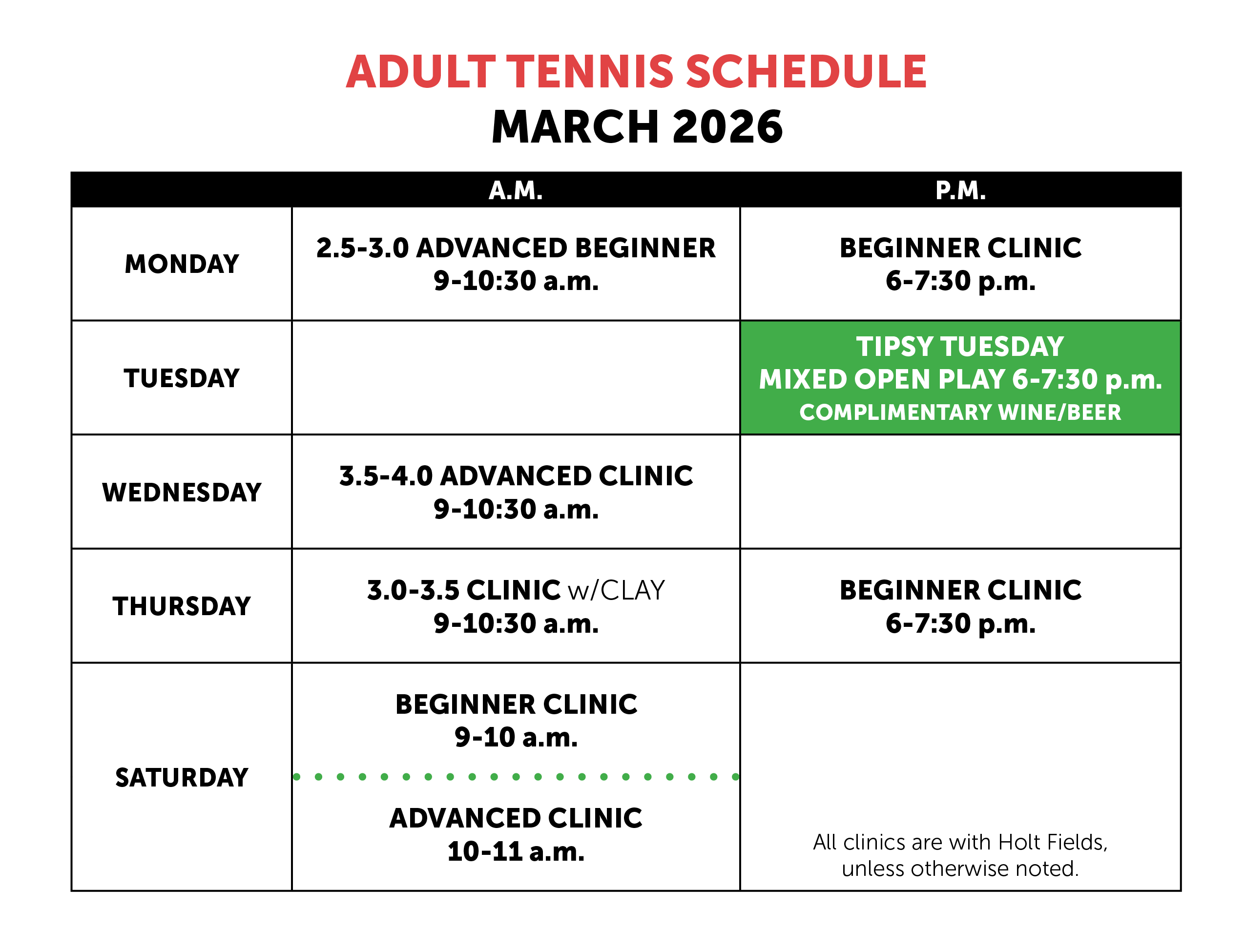 Discounts apply to USTA members. Valid USTA membership card must be presented to be eligible for discount. $5 court fee still applies. For questions, please email Christi.